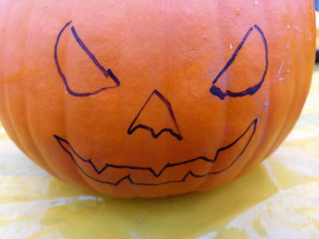 Nach einem weiteren Reinigungsvorgang konnten bereits die gruseligen Gesichter auf die Früchte aufgemalt werden.